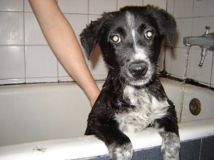 Esta es Oli ya con 70 días, tomando su baño…es muy linda porq le gusta pero no se convence todavía.