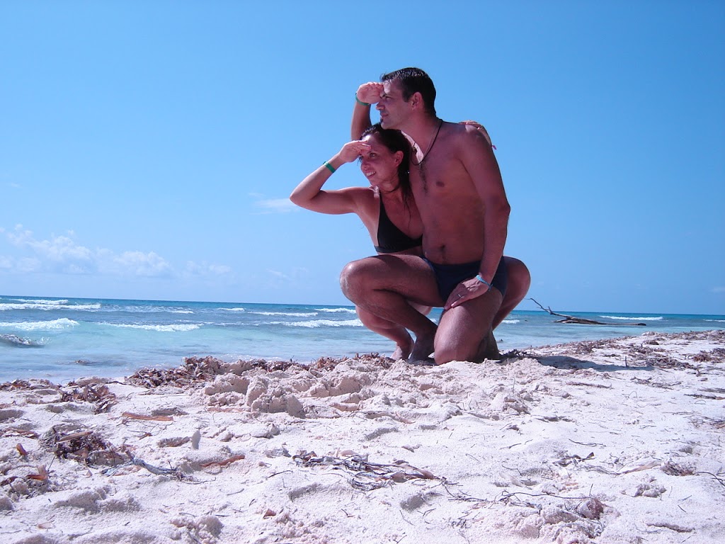 De las 200 fotos que nos sacamos en este viaje, gana esta x divertida; y considerando que pusimos la cámara sobre un montón de arena y, jugamos con el «timer», salió muy buena!!!! ( Isla Saona)